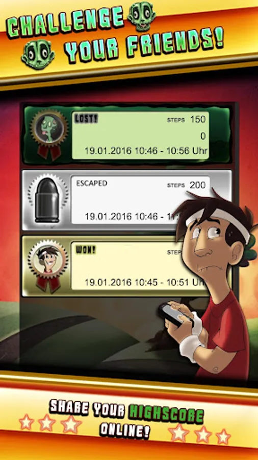 • Be quicker than the zombies. A successful escape run yields AMMO for your weapons.