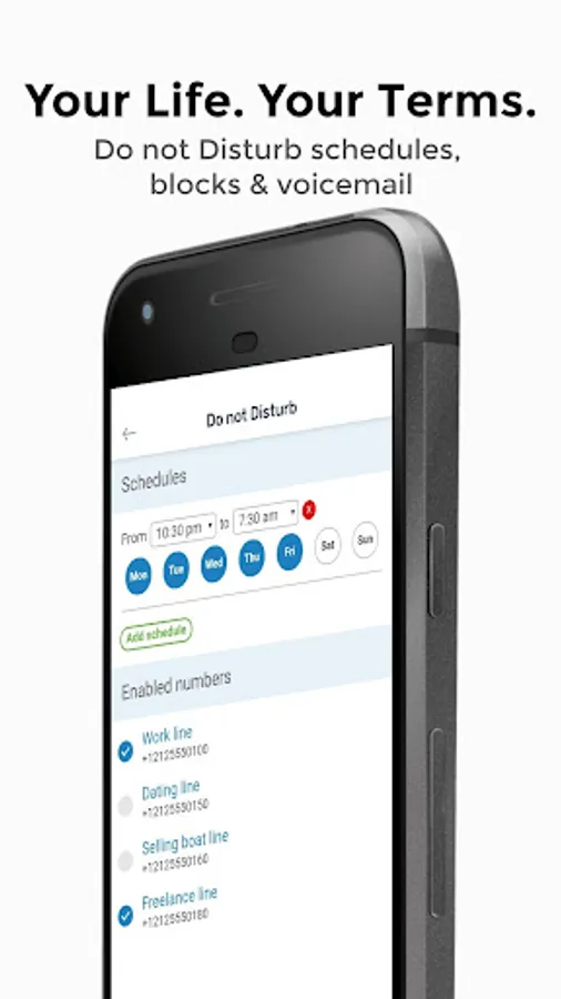 AddaLine allows you to add real phone numbers to your phone. You can call, text and add a voicemail and setup schedules etc. Just like you would with your real phone.