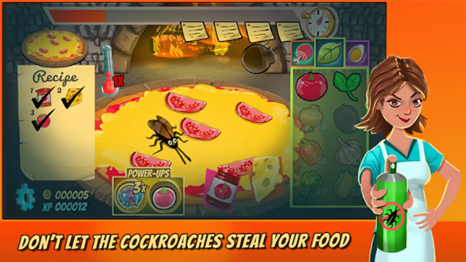 Even great chefs sometimes get strange customers. Be ready to serve dinner to vampires, cockroaches, evil critics and many more. Dash and get rid of small cockroaches that wants to steal your pizza toppings.