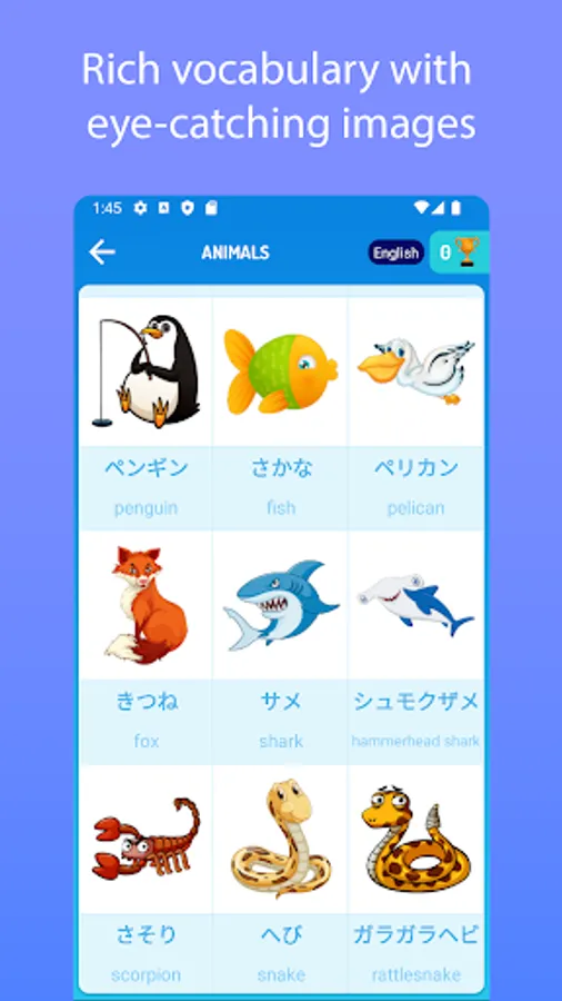 ★ Learn Japanese vocabulary through eye-catching pictures and native pronunciation. We have 60+ vocabulary topics in the app.