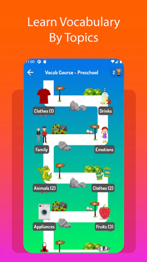 Alphabet, Number, Color, Animal, Appliances, Bathroom, Body parts, Camping, Children's Bedroom, Christmas, Cleaning Supplies, Clothes and Accessories, Containers, Days of week, Drinks, Easter, Emotions, Family, Flags, Flowers, Food, Fruits, Graduation, Halloween, Health, Insects, Kitchen, Landform, Living Room, Medicine, Months, Musical Instruments, Nature, Occupations, Office Supplies, Places, Plants, School, Sea Animals, Shapes, Shops, Special Events, Sport, Technology, Tools & Equipment, Toys, Transport, Vegetables, Verbs, Weather, Winter, Fairy Tales, Solar System, Ancient Greece, Ancient Egypt, Daily Routines, Landmarks, Parts of Horse, Healthy Breakfast, Summer Time, etc.