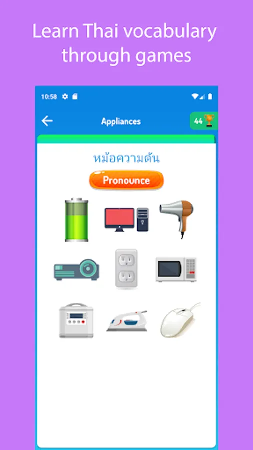 Planning a trip to Thailand or considering work opportunities there? Or perhaps you're starting your journey into the Thai language? Our app is your perfect companion! Master thousands of Thai words through vivid pictures, clear pronunciation, and engaging word games.