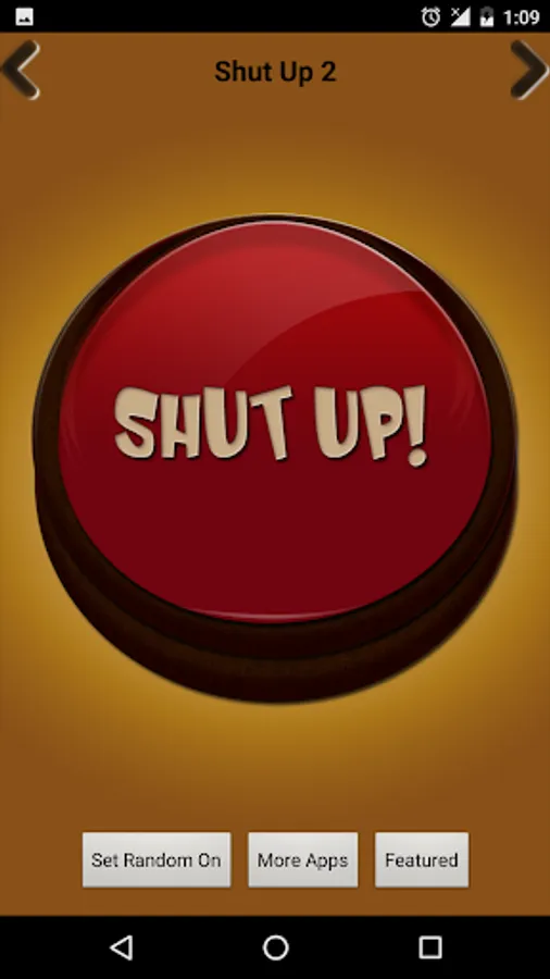 This shut up button app is easy very to use. You can just press the big red Shut Up button once and it will play the select sound. If you want to use a different Shut up sound then use the arrows on the right and left to change the shut up sound and bingo, the newly selected Shut up sound will be played when you hit the button next time.