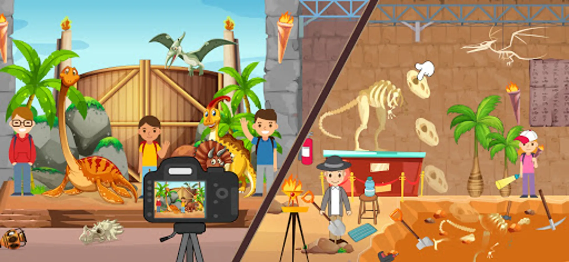 You can have fun learning puzzle solving by playing multiple puzzle games in pretend town museum adventures. The jigsaw puzzles could help you to understand the appearance and shape of the collection in an interesting way, and the videos and vocal introductions will provide more facts and background of the collection. There is a quiz to solve a puzzle and get to enjoy with a lot of hidden treasures, you will be rewarded by a key! Go to the pretend city museum, hours of fun, adventure waiting for aurtisctic people for this dinosaur fossils in prehistoric times simulator.