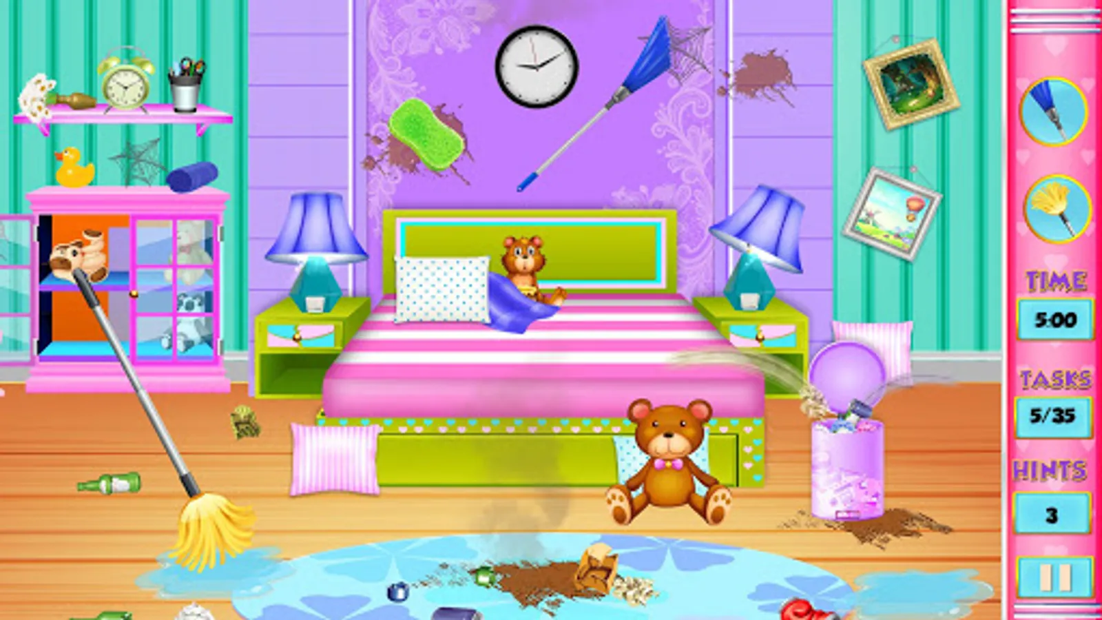 My family mansion cleaning is a usual housekeeping Messy House Cleanup games for girls because you must cleanup messy rooms & arrange scattered items in the shelves, closets & cupboards to give your home bedroom a neat & clean look. Pick up dirty laundry for washing in the house cleaning simulator game. You can have fun cleaning up this princess messy castle or house with different washing activities like straighten the lights, wall hangings, lamps, furniture, rearrange her dolls and other items. To wash house scrub the stains, sweep and mop the floors, wipe the wall stains, remove spider webs using duster, vacuum the floor and throw away the junk and so much more! Renovate and decorate rooms in princess luxury mansion! Take care of this dream home by cleaning, arranging and decorating it.