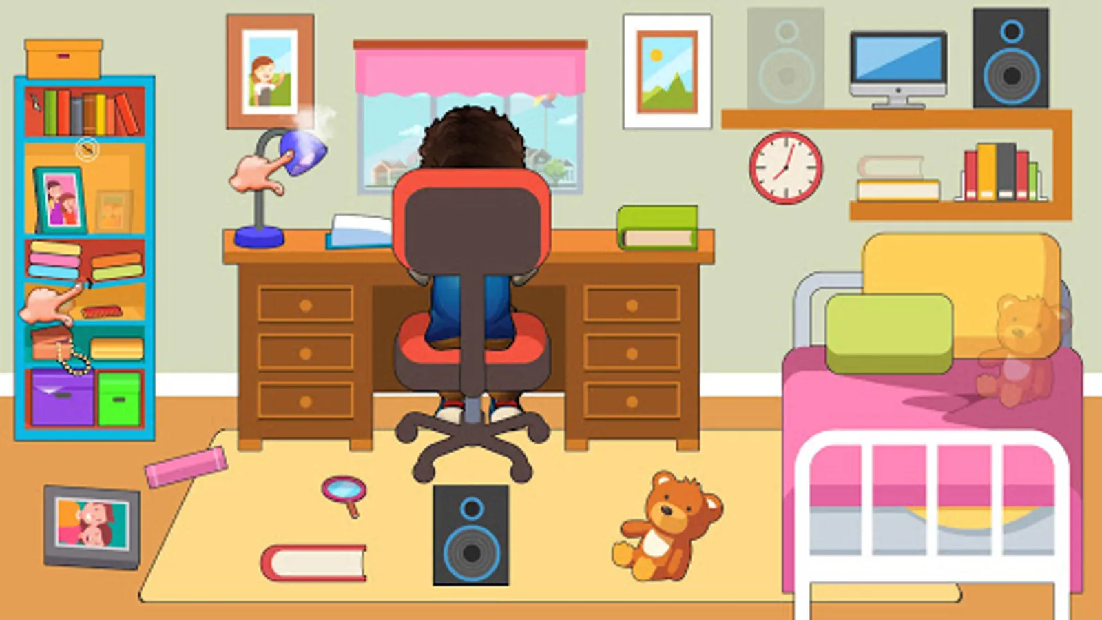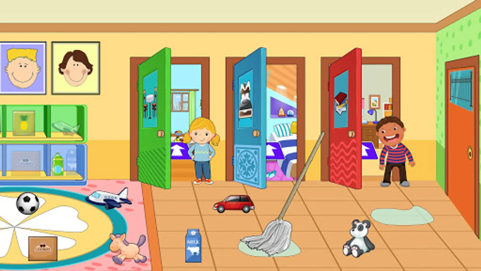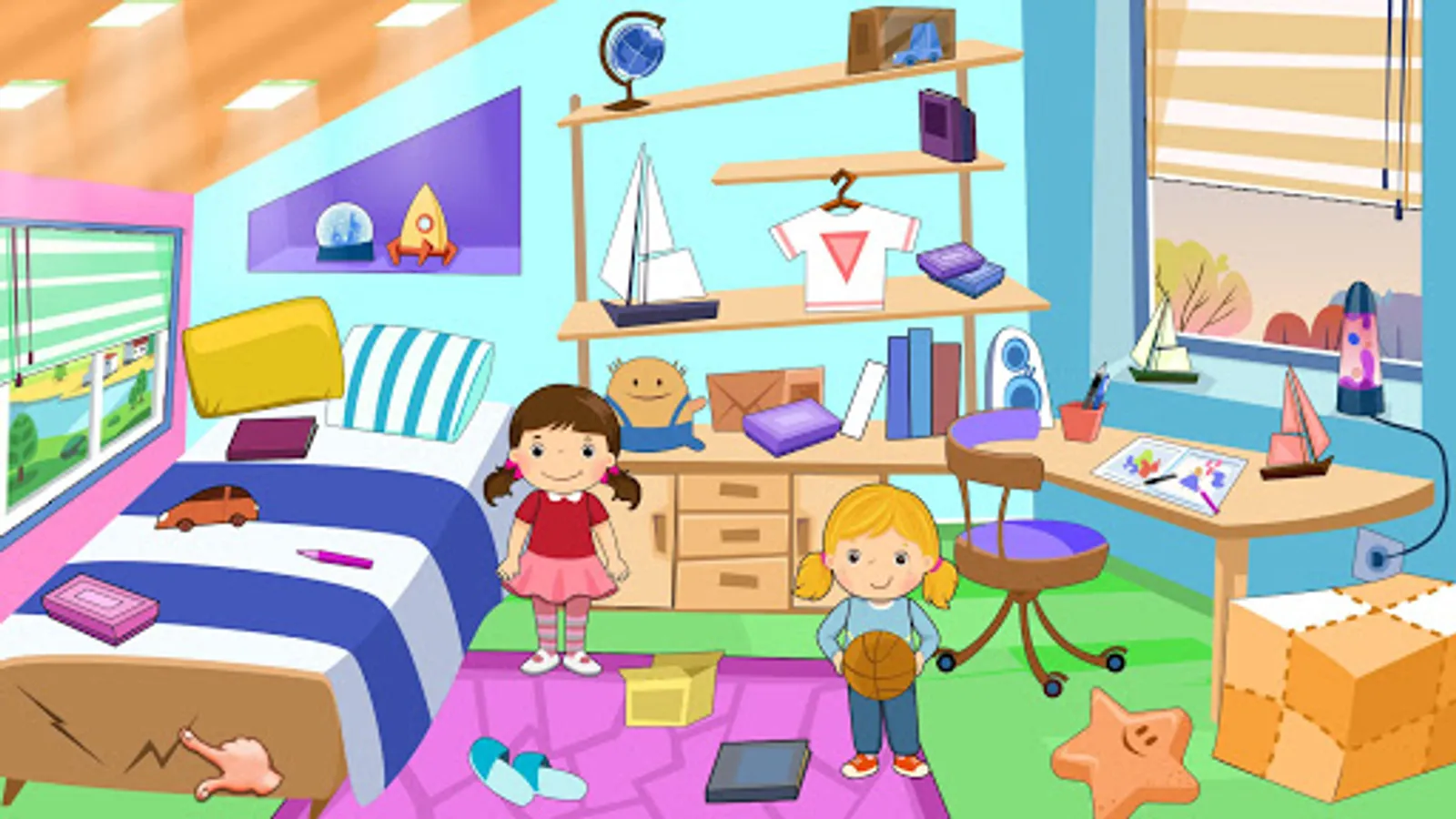 Pretend play home repair is a part of unique adventure simulator games for girls where you have to fix furniture, electronic items and other household things being the pro mechanic & repairman. Play in the bedroom, and take out clothes from the closet, and organize shoes, and more! Play on the beds, tap the mobile, touch the lamps, and play and have fun in the bedroom! Play outside in the yard at the pool, or go inside the garage and repair a bicycle using a medley of tools! Pretend play home repair will make your leisure time full of fun & adventure by cleaning the messy house bedroom, kitchen & tv lounge.