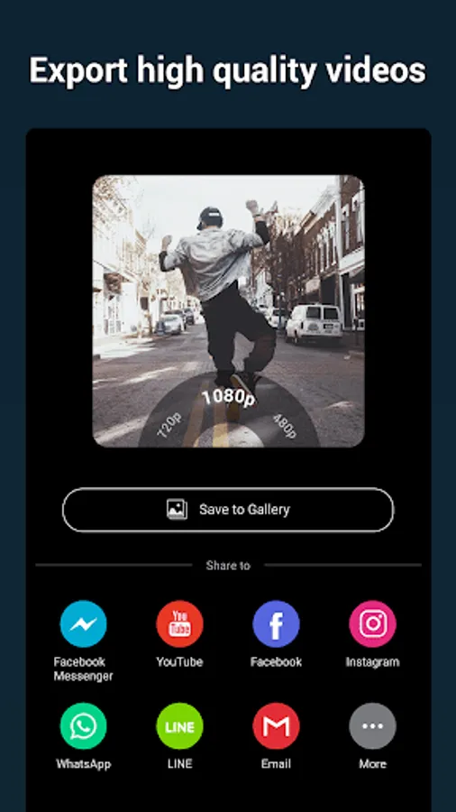 Export videos and slideshows with multiple resolutions. Support most video formats, like MP4, MOV, AVI, FLV, 3GP etc. You can save video or slideshow to your draft or album at any time.