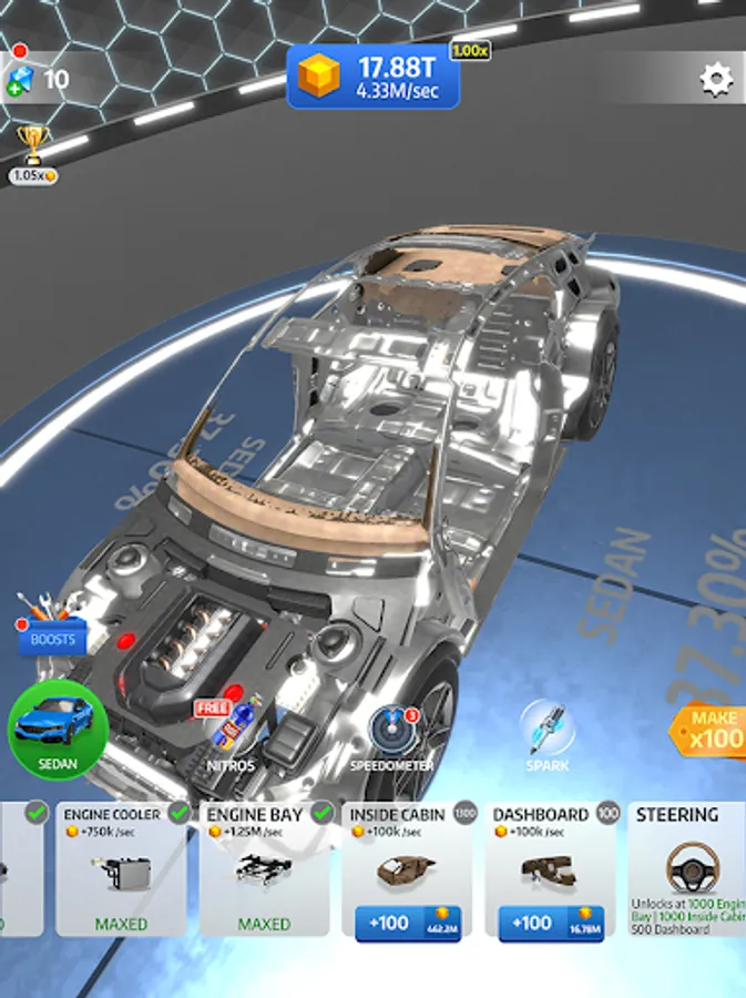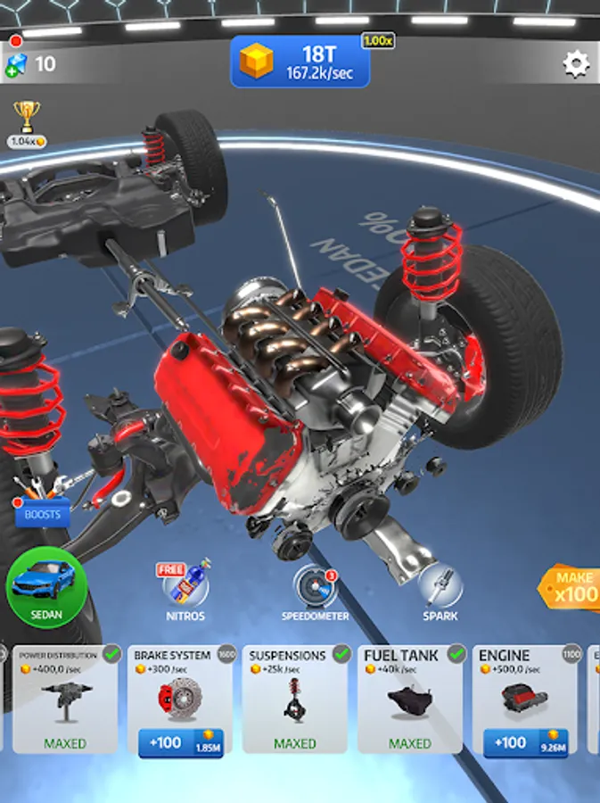 Have you ever wondered what makes a car drive? Experience every detail of creating a car from the ground up with Idle Car. Learn how a car works and what is needed to get there! Fun and easy to pick up. You will build your first car in no time!