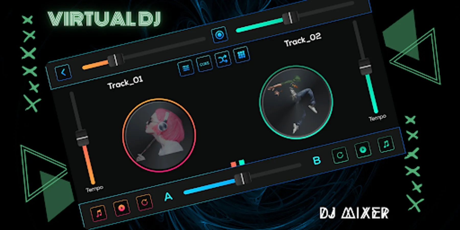 Looking for an amazing virtual dj - Dj mixer ? Want to create your own music ? Want to share your inspiration with friends? dj virtual - Music Mixer give you chance to scratch and mix your dj song like biggest dj music makers a real cross fader and editor in your device now dj music.