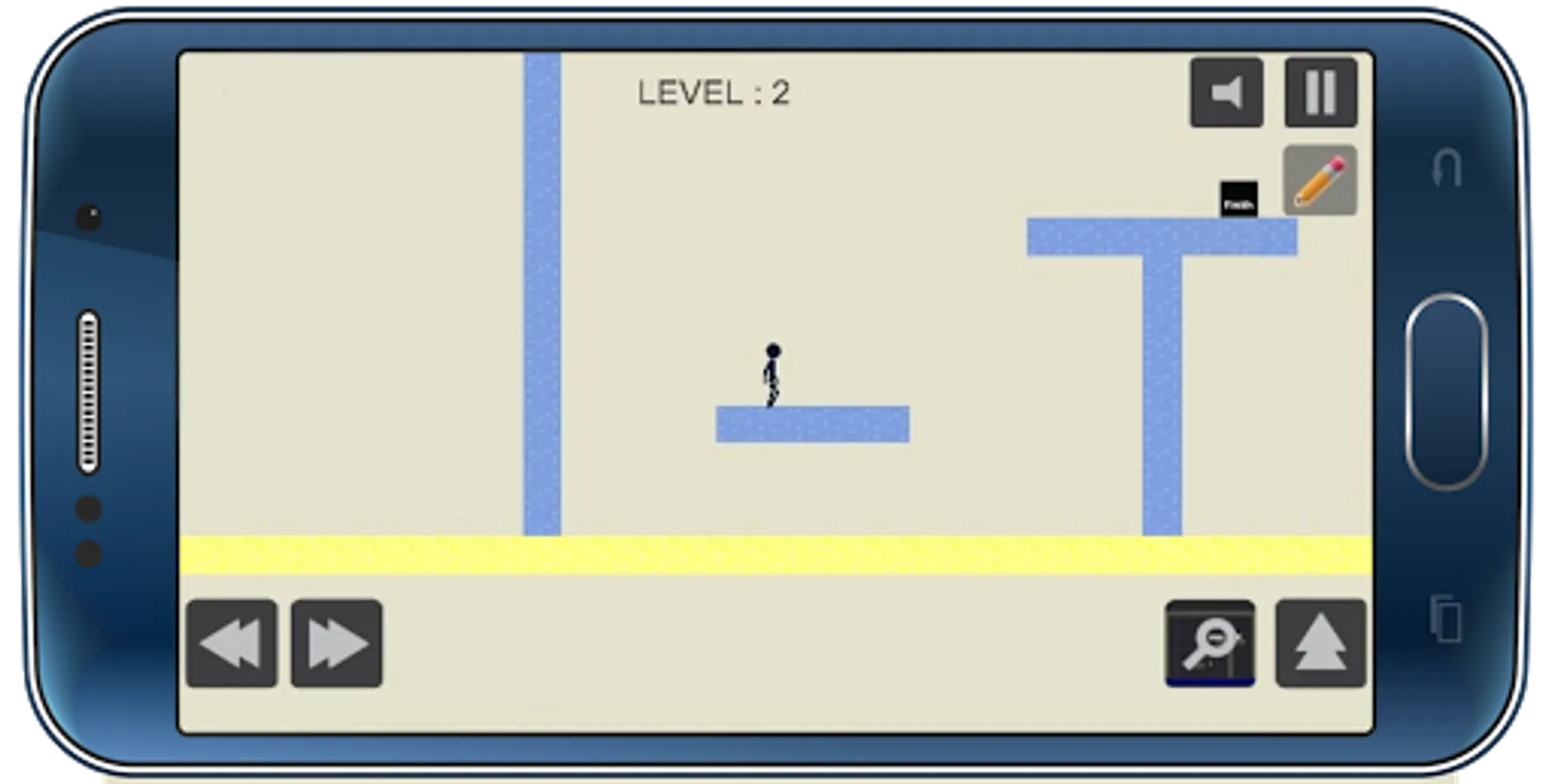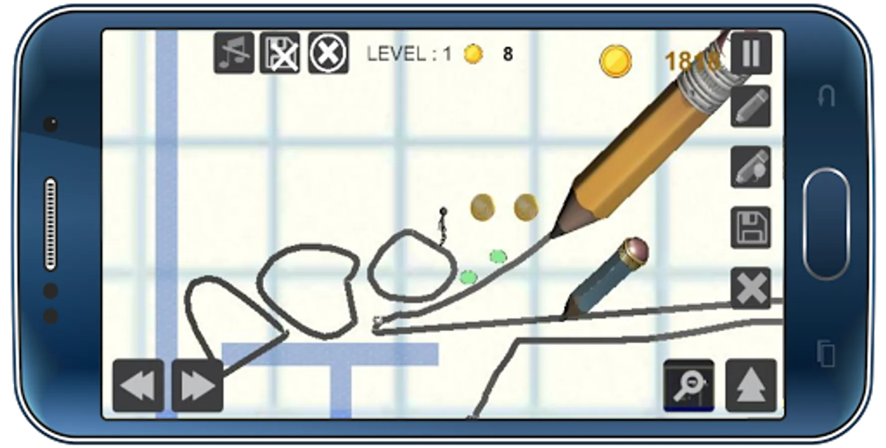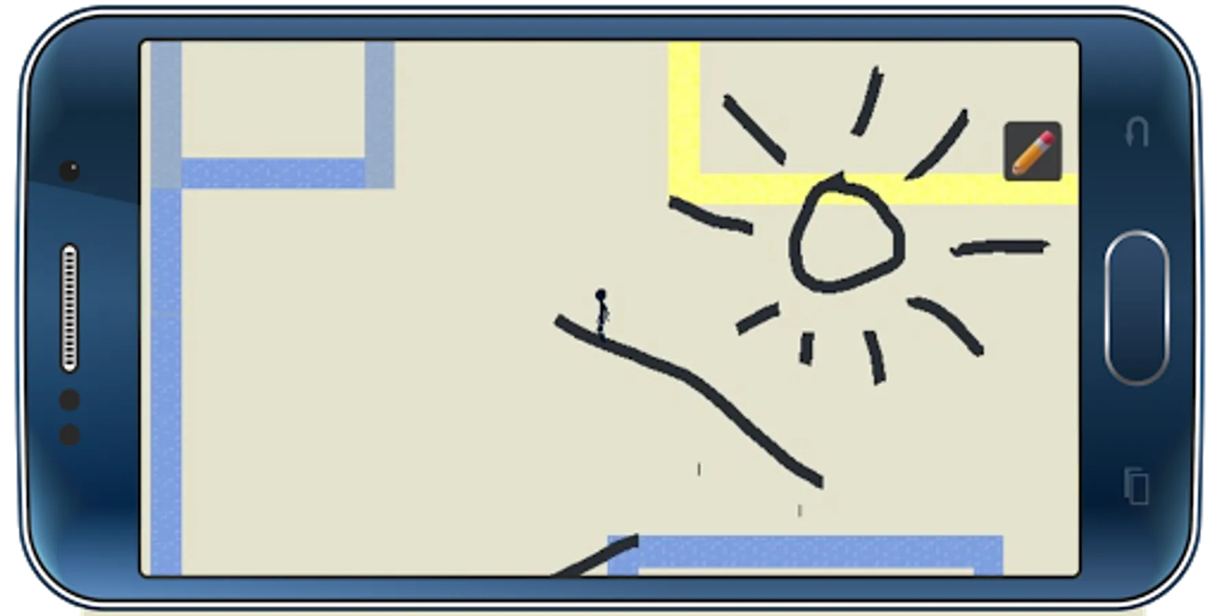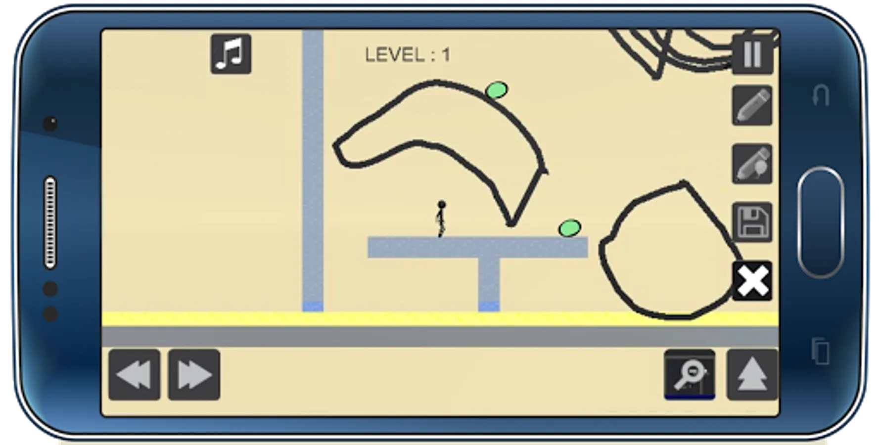 Stickman enters a drawing game world of walls and rooms and shapes and you help him navigate and make it to the finish! Stickman Adventures start simple and you draw the paths and steps and shapes to run through the levels.