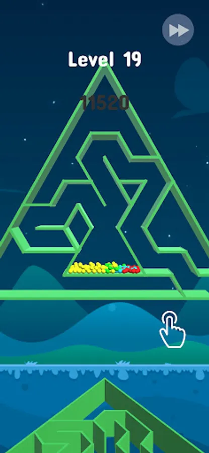 *You can be rotating the maze, let the ball roll out of the maze right or left and clear the maze puzzle. All balls dropped to the next puzzle shape.