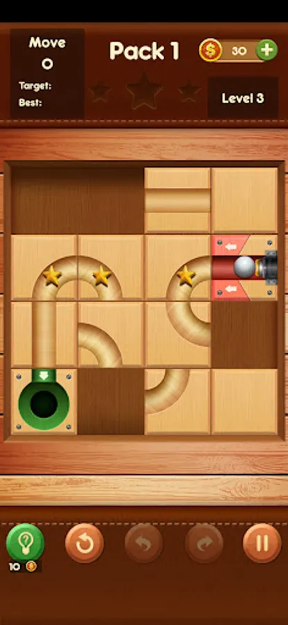 *Wood Blocks: Slide or drag to move it. There is a path on this block to roll or slide the ball through it.