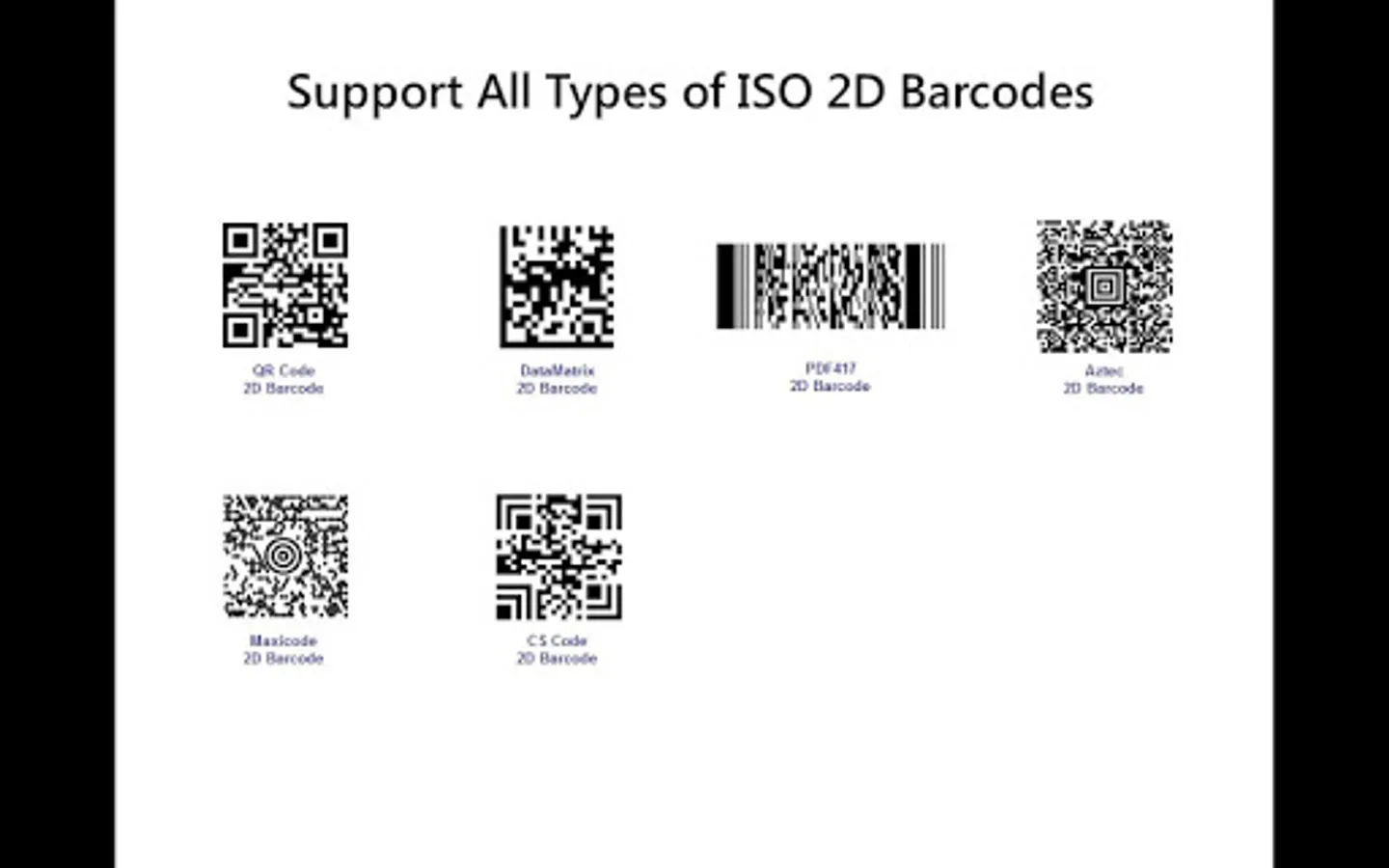 - Support 18 types of 1D/2D barcodes (#1 in the market): Support all types of ISO 2D barcodes (demo video - https://youtu.be/jnKqZc0eKBg ) including QR Code, DataMatrix, PDF417, MicroPDF417, Aztec, Maxicode as well as CS Code and also support the most frequently used 1D product barcodes (demo video - https://youtu.be/3pUkHWUF2Ho ) including UPC-A, UPC-E, EAN13, EAN8, ISBN, Code39, Code93, Code128, Interleaved 2 of 5, Industrial 2 of 5 and MSI.