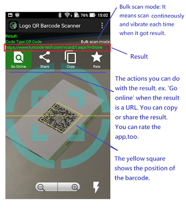 - Easy to use: Flash on function for scanning in low-light environments, zoom in function for long distance scanning, inverse/mirror QR Code scanning support, continuous scanning to make sure the right one scanned, scan from taken pictures from album.