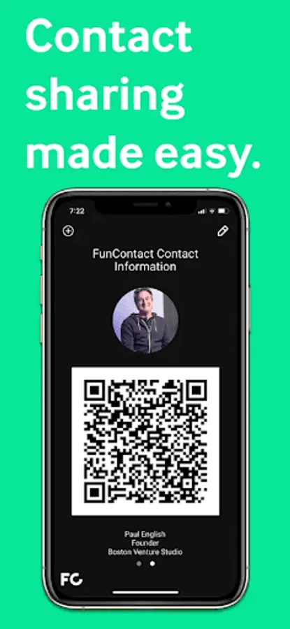 FunContact lets you create a QR code with your contact info, such as name, email, phone number, address, social media, etc. You can even create more than one QR code, maybe one for your work info, and another for your personal contact info. Once you create a QR code, you can then share it with anyone. They simply aim their camera app at your QR code, and they will then see all of your contact details, which they can then save to the contacts on their phone.