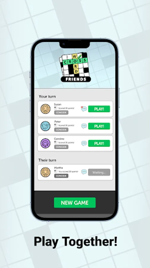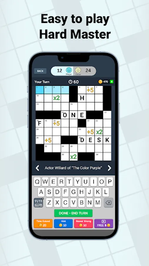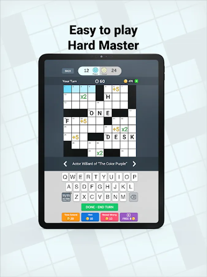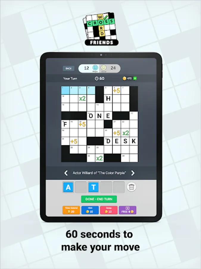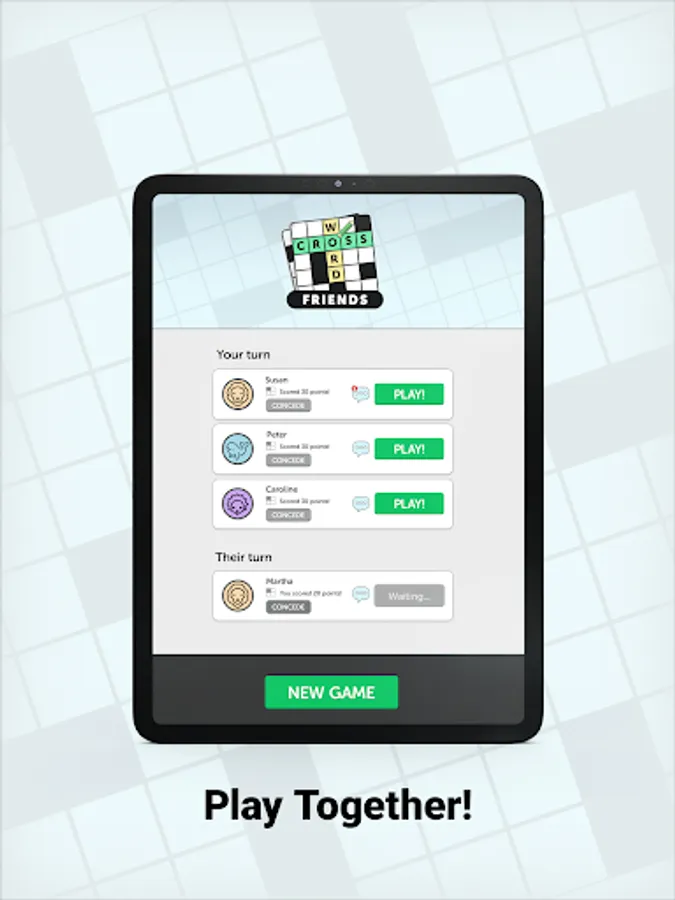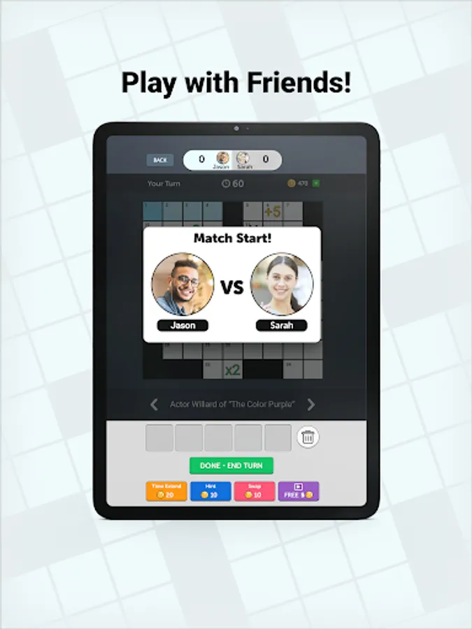 Crossword Friends is a turn-based game where two players complete the crossword puzzle together and compete for the highest score. Try this new take on the classic crosswords you know and love. Challenge yourself on different size boards!