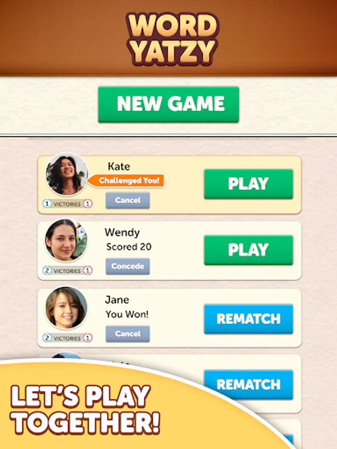 Word Yatzy is more than just a scrabble game with friends. How good are you at spotting words from a random set of letters? Do you have the Yahtzee skills to fill all 5 slots and score big?! Get ready to test your word and strategy skills on this new addictive word game!