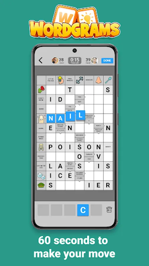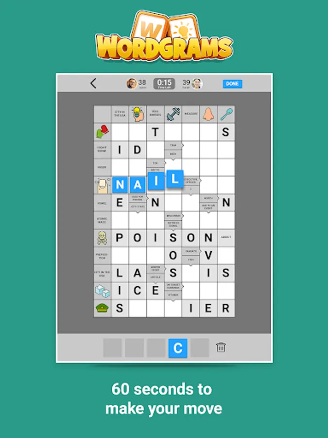 Wordgrams is a turn-based game where two players complete the crossword puzzle together and compete for the highest score. It’s a new take on crossword puzzles too - Scandinavian style! - with clues inside the squares and some clues are pictures.