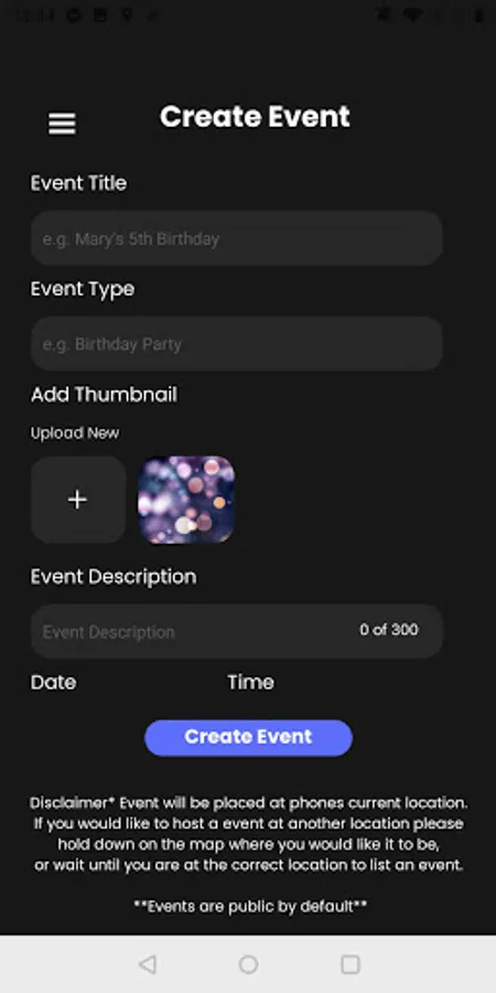 Public/ Private option: Reach more guests by posting your Function publicly. When a user decides to post a public Function, any nearby users will be able to see the Function. This is a great way to make your party pop. On the other hand, if you wanted to have a small event with just friends, simply select the private option.