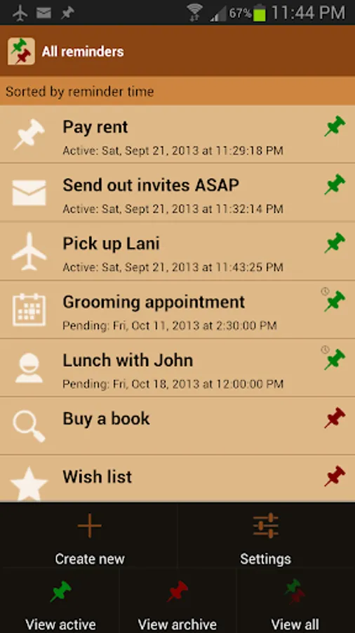 - You can archive reminders to re-use them later, or if you simply do not want some reminders in your status bar