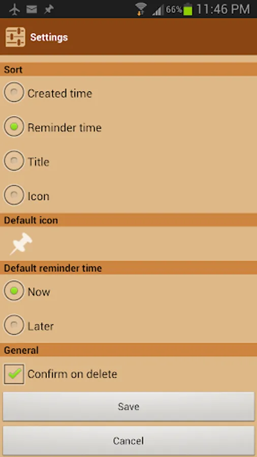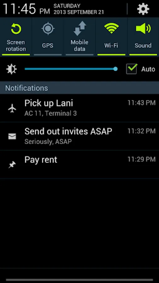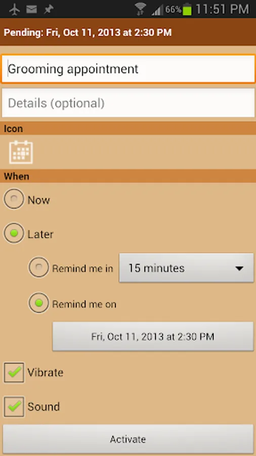 - You can immediately display a reminder in your status bar, or set the date and time to create an alarm for a future reminder