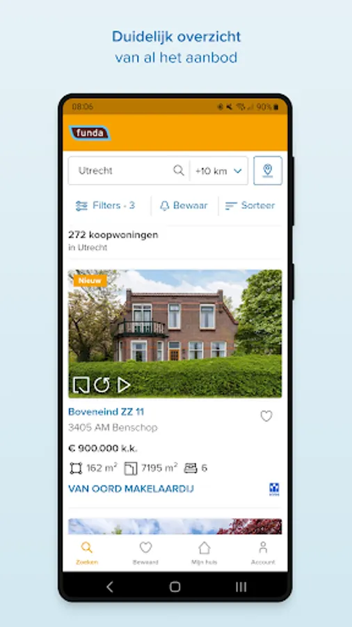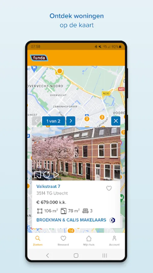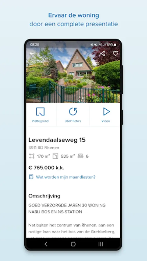Whether you are looking for in the list of dwellings or on the card, you will immediately get a first impression of the house. Thanks to the great pictures you can see right away if it's something for you. On the map, you can take a quick house "preview" by tapping on the marker. Do you like it? You can then also just all photos, 360 ° photos, videos and maps of viewing the house.