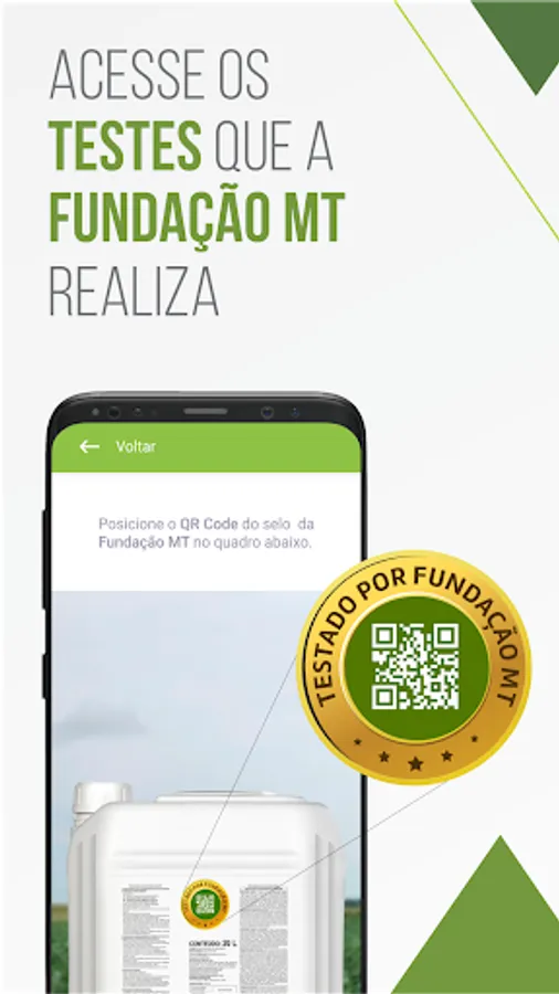 Now you can have access to the tests that the MT Foundation conducts. Access the reports of partner companies that obtain the QR Code (Testado Fundação MT) and obtain the information: Date of realization, location, soil conditions, number of applications, climatic conditions, conclusions and much more.