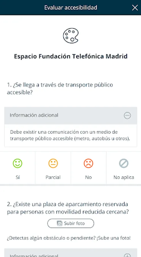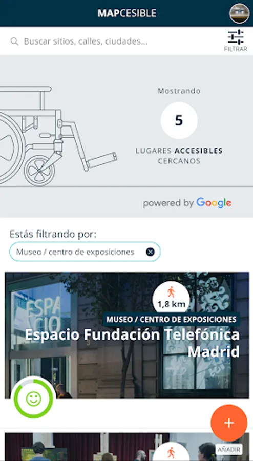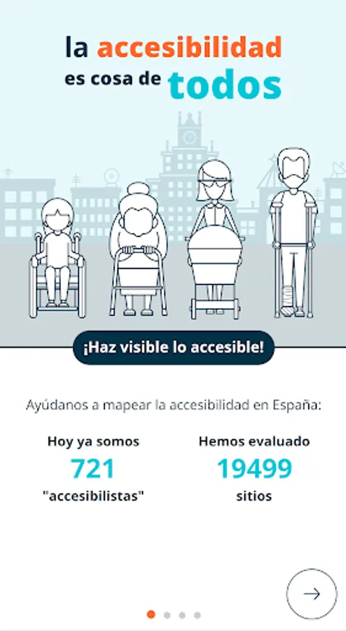 Join the Mapcesible community and make the accessible visible! valuing the accessibility of the places you usually visit. It is easy, fast and very simple, thanks to the guided questions and the contextual aids (made with the consulting of Ilunion Technology and Accessibility). Your contributions will benefit thousands of people with reduced mobility. Because accessibility is everyone's business.