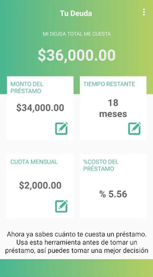 Your Debt is an app that allows you to calculate the cost of a loan you want to request before requesting it. So you can plan in time how much extra money you need to acquire that loan. It also allows you to compare between different loans and thus make a better decision.