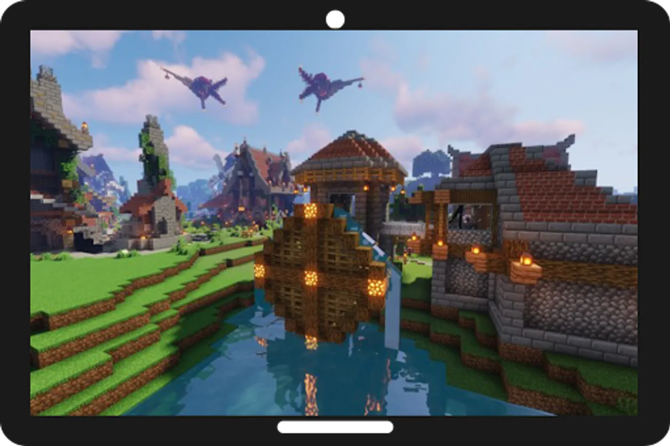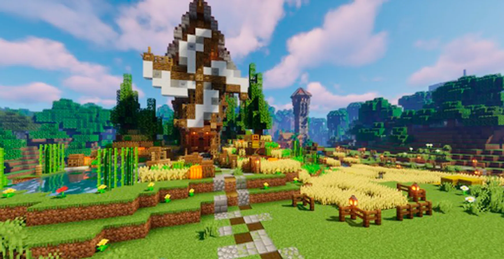 Fantasy Village is a map made up of several houses and created from scratch in creative mode. It consists of 4 main houses each with a function (Forge, Wood Warehouse, Food Warehouse and the mill to store everything we want). On the other hand we have two small identical houses to be able to have a private and quiet place. Finally we find the hobbit house, with Lord of the Rings style details.If we look at the sky we will see 3 ships flying over the town of medieval and Scy-fi style.