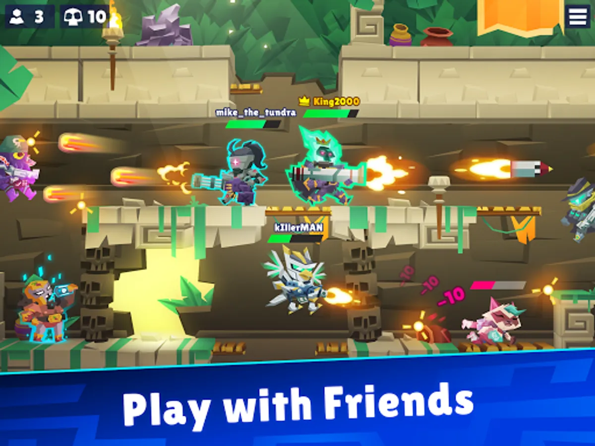 And with just 15 second matchmaking time and 3 minute battles, you get to enjoy all the excitement and fun of larger battlegrounds-style Battle Royale games - without the wait or drained batteries!