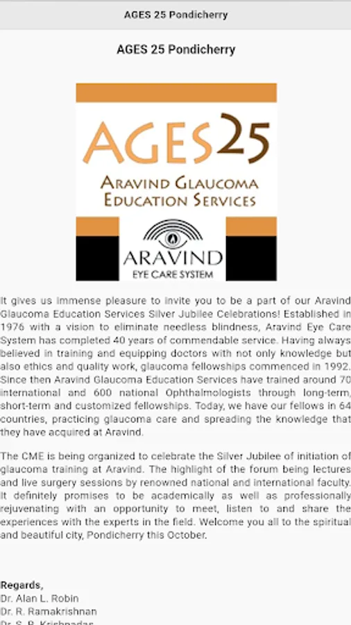 About AGES 25 - Aravind Glaucoma Edu