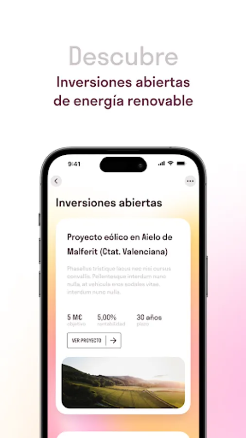 Fundeen is a FinTech that was born in 2017 to democratize investment in renewables and to collectively promote sustainable and positive projects for the environment. All the opportunities published on the platform are previously evaluated at a technical, financial and legal level by a team of experts, but it is the users who decide how much and where to invest, with all the project documentation at their disposal. Neither opacity nor small print. Investing in renewable energy has never been so easy.