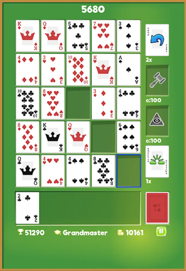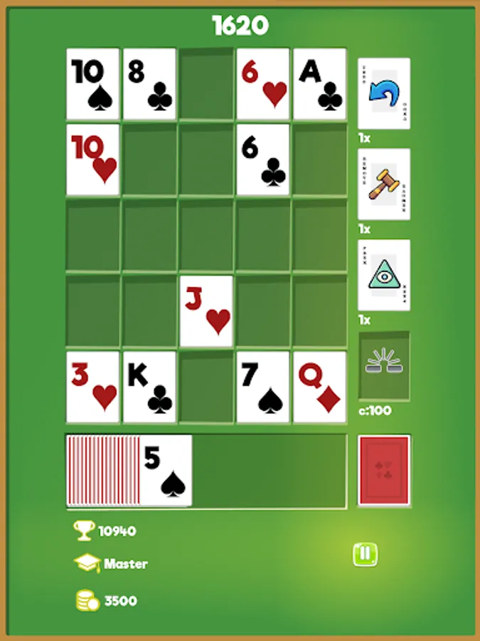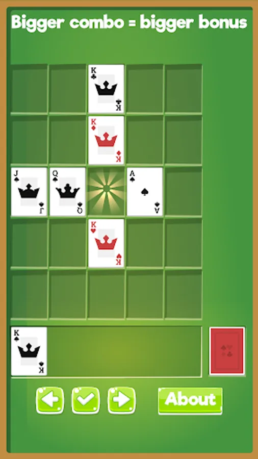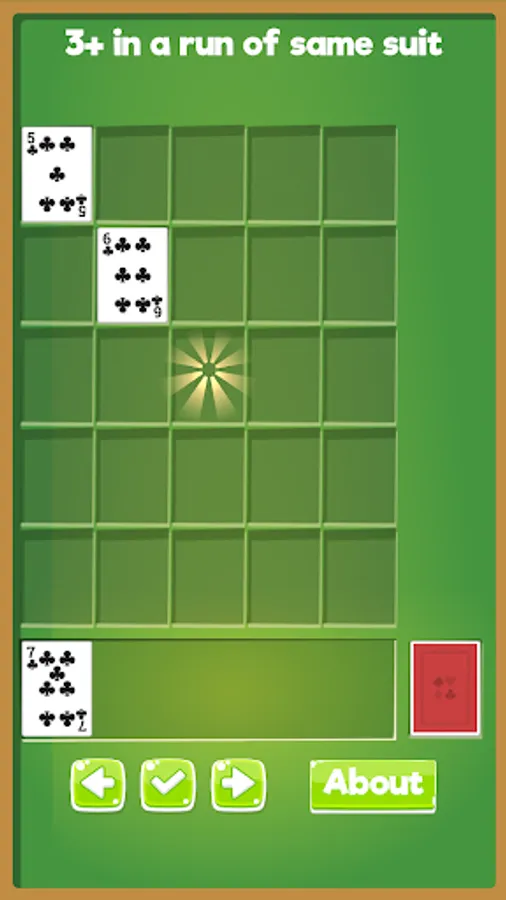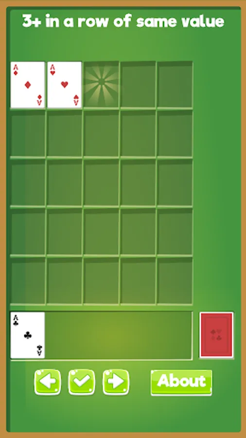 The goal of Five by 5 Solitaire is to create sequences of suits or matching numbers before you run out of space. While it is apparently simple, true mastery requires good instincts, planning and experience.