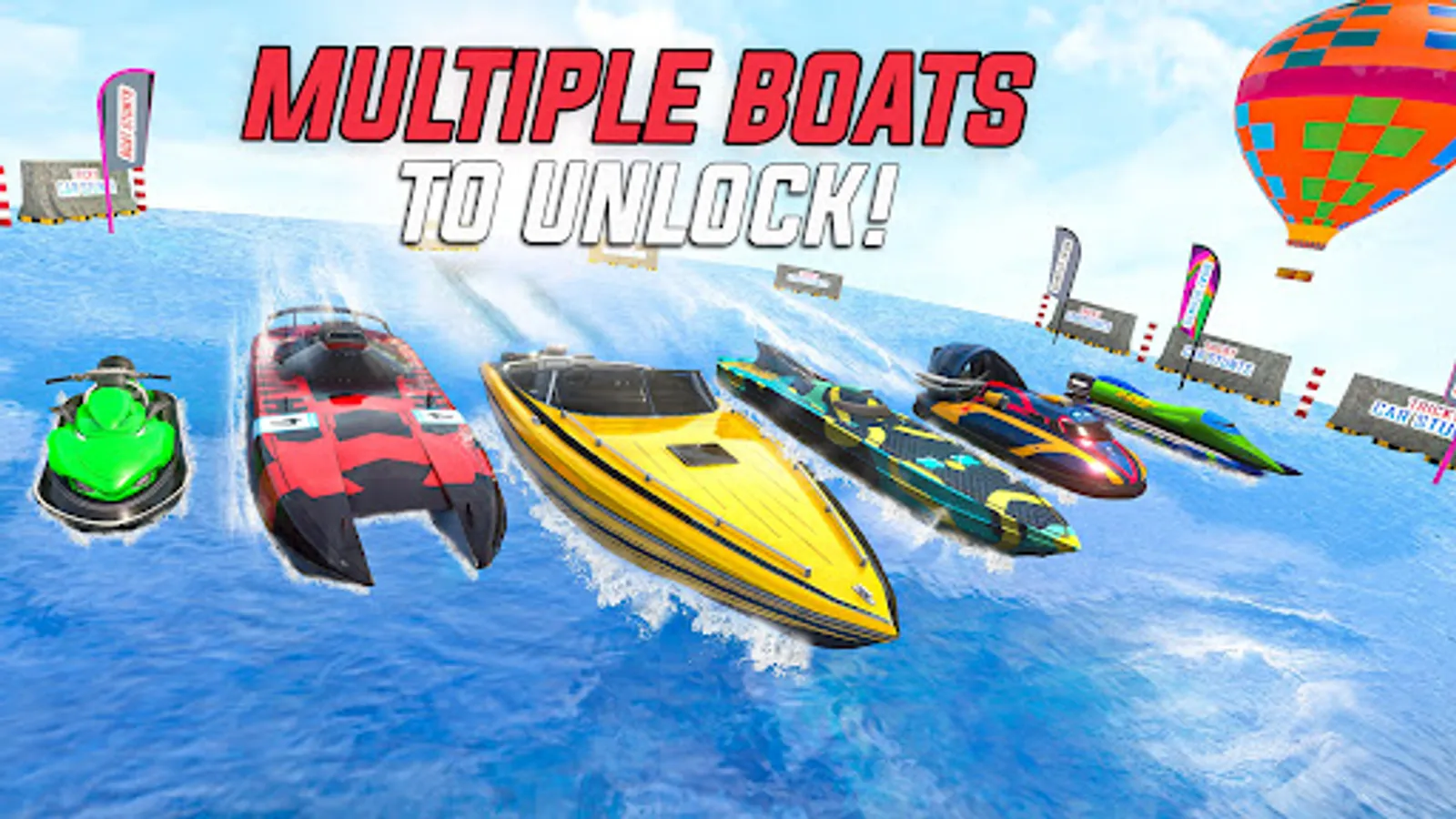 - Multiple speed boats with different functionalities in this racing boat game.