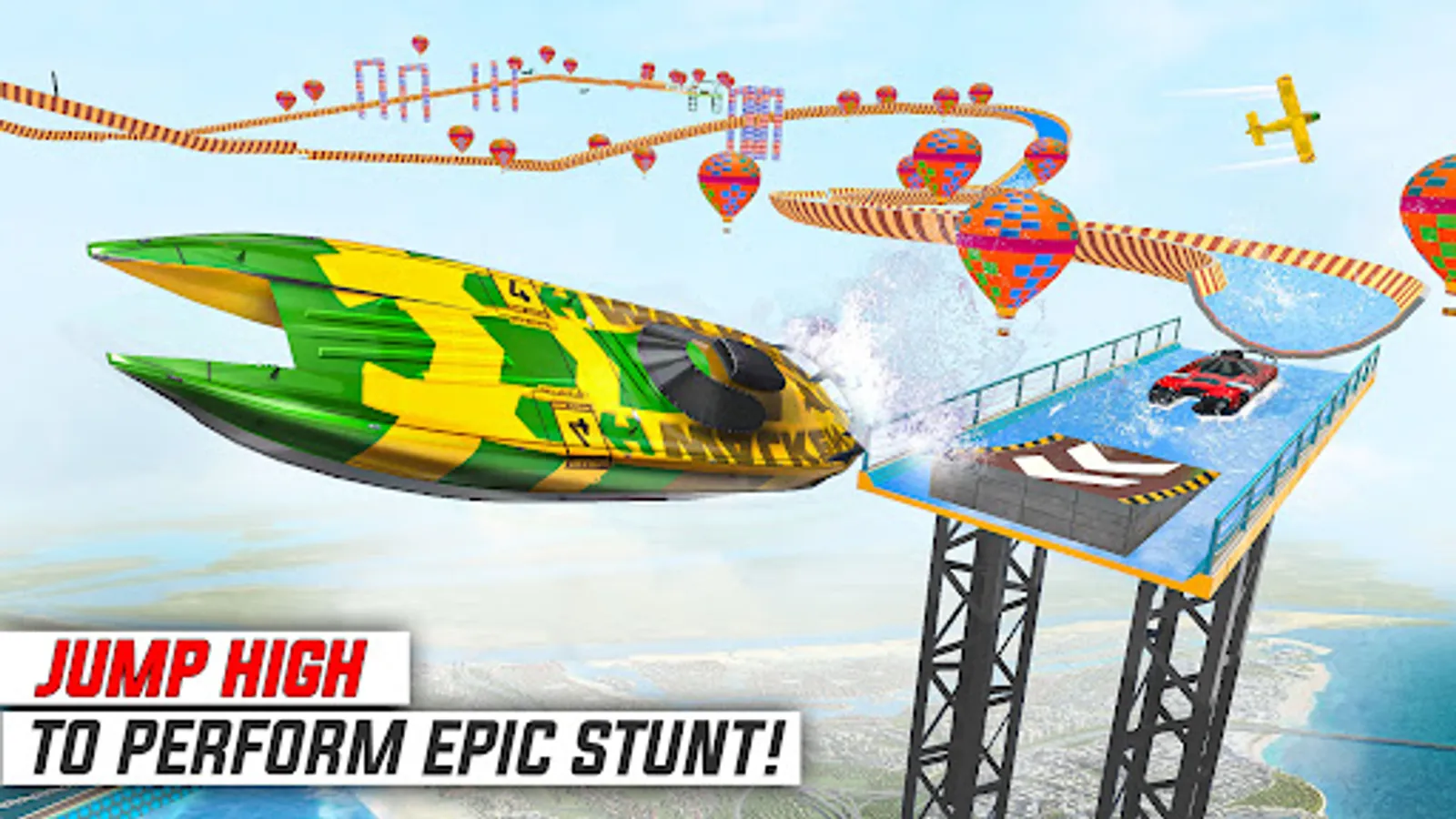 - Become a boat stunts champion in the water boat racing game.