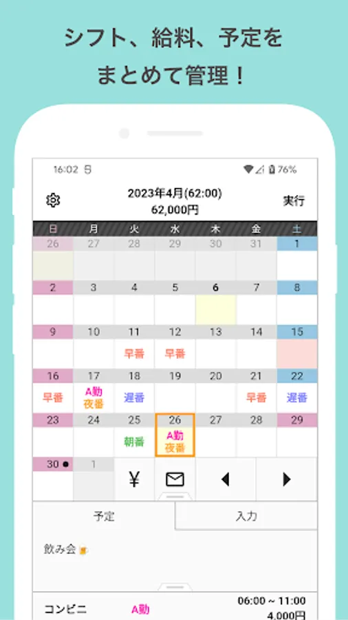 Shift salary calculation is very popular! Double work can also be registered! The definitive shift app that allows you to manage shifts, manage schedules, and calculate shift salaries all at once!