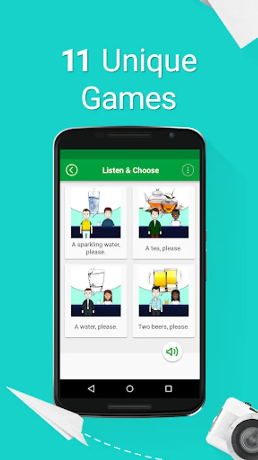 ✔ 11 fun games – a innovative approach to practice your listening, writing and speaking skills.
