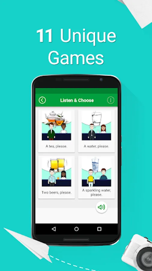 ✔ 11 fun games – a innovative approach to practice your listening, writing and speaking skills.