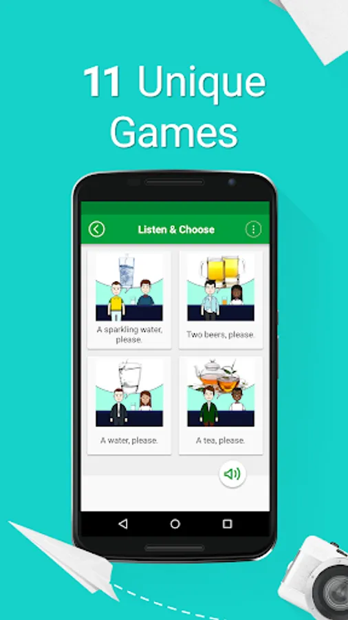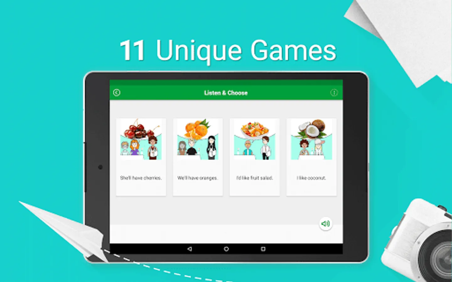 ✔ 11 fun games – a innovative approach to practice your listening, writing and speaking skills.