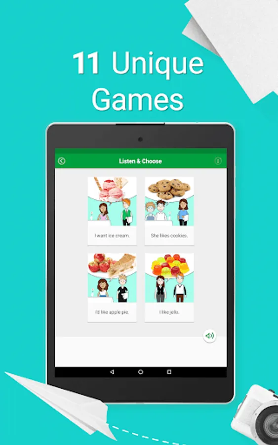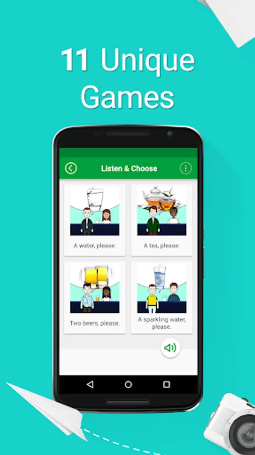 ✔ 11 fun games – a innovative approach to practice your listening, writing and speaking skills.