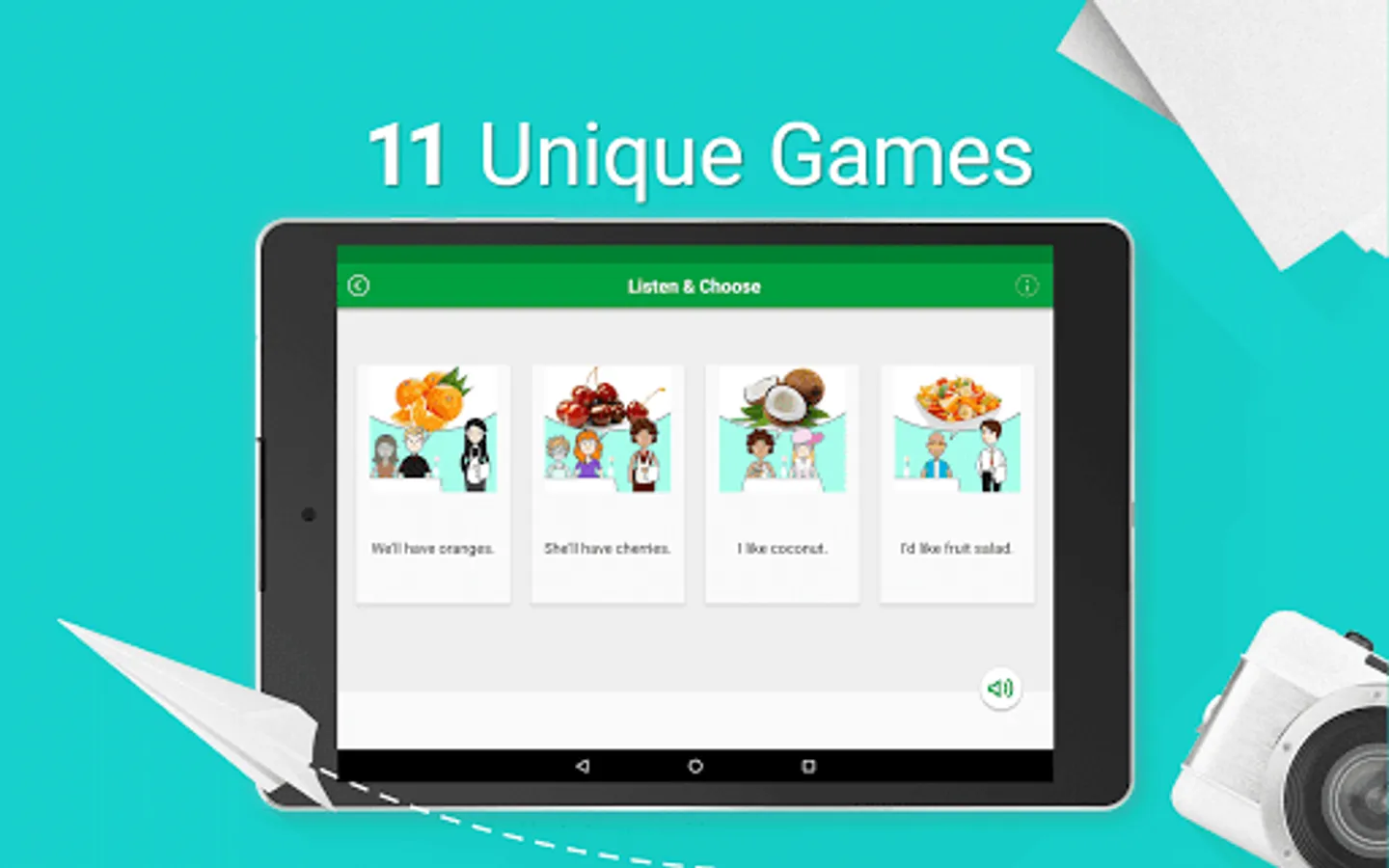 ✔ 11 fun games – a innovative approach to practice your listening, writing and speaking skills.