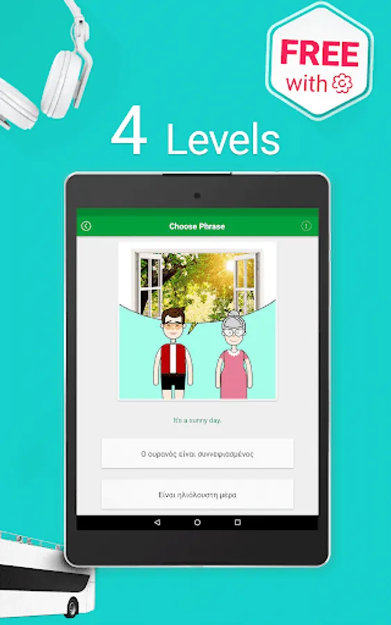Fun Easy Learn has developed many applications to help people around the world learn foreign languages for free. Fun Easy Learn applications improve your Greek skills: speaking, listening and grammar. The dictionary of the apps has human voice pronunciation for each common phrase to improve your speaking skill.