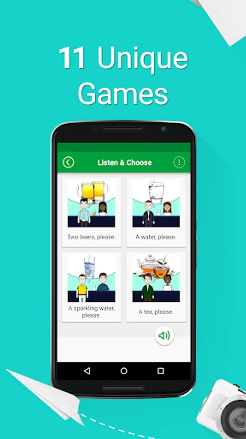✔ 11 fun games – a innovative approach to practice your listening, writing and speaking skills.