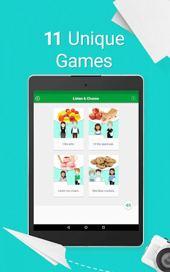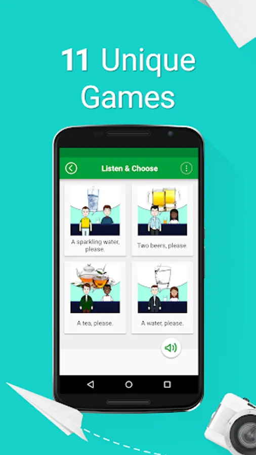 ✔ 11 fun games – a innovative approach to practice your listening, writing and speaking skills.