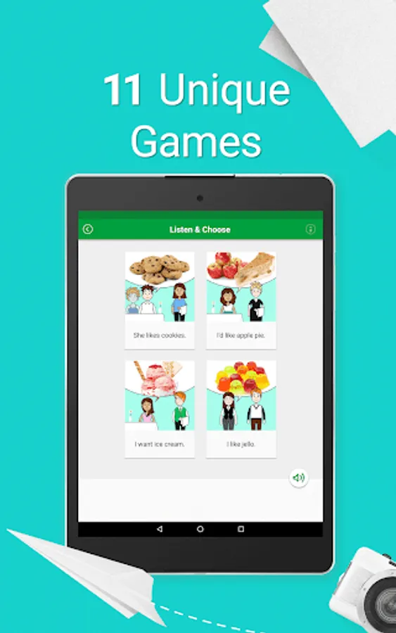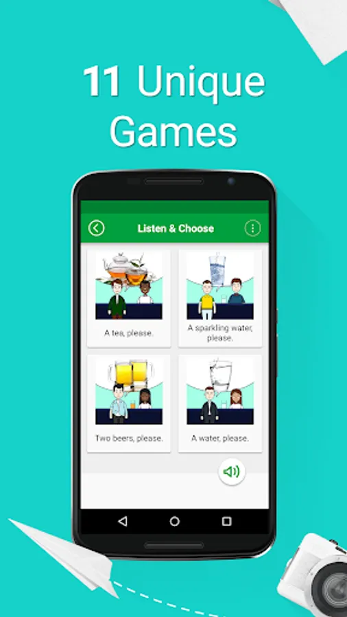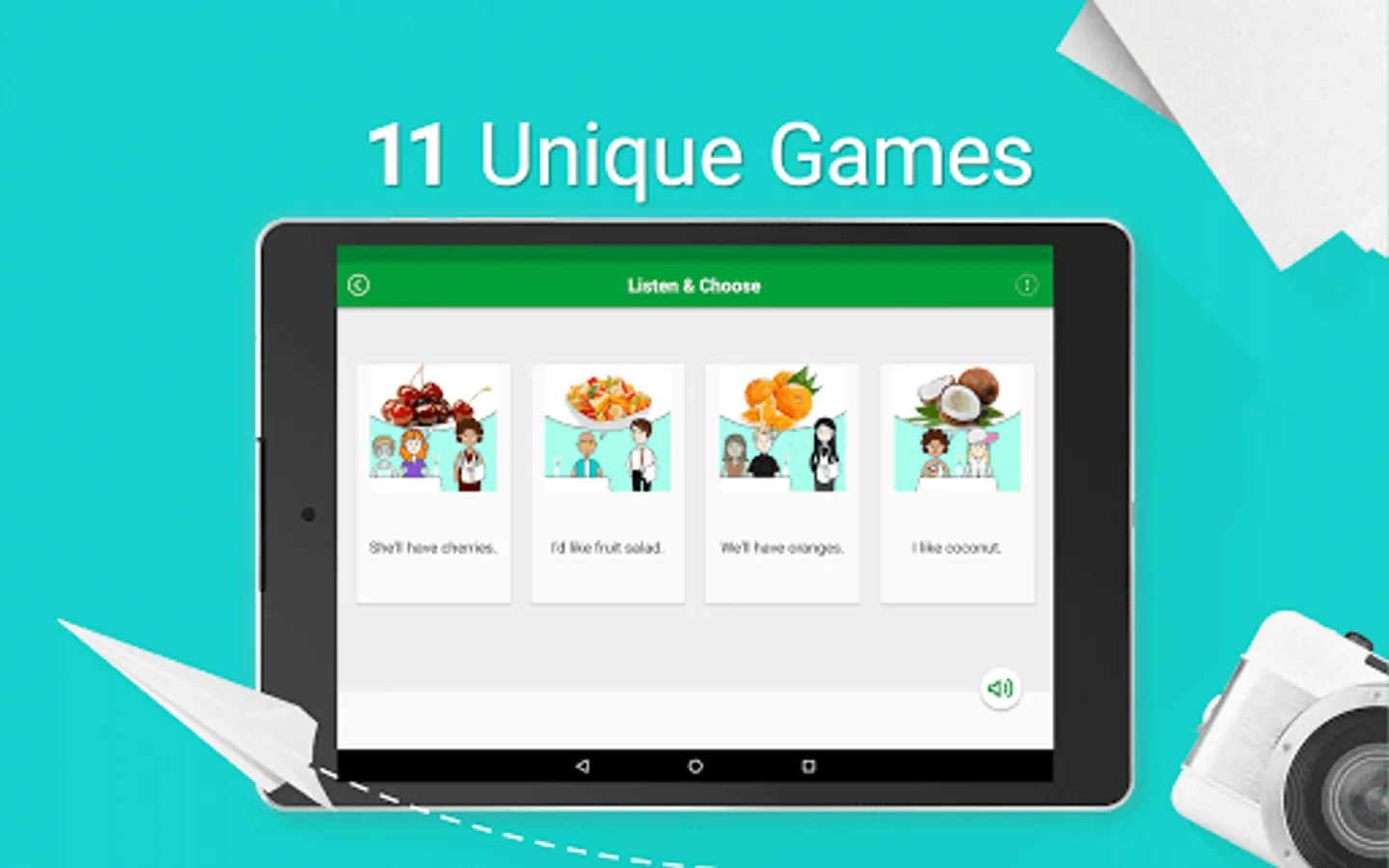 ✔ 11 fun games – a innovative approach to practice your listening, writing and speaking skills.