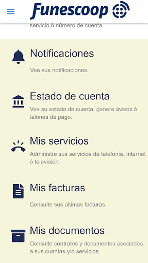 -Consult all your contracted services, with the possibility of acquiring new products and services.