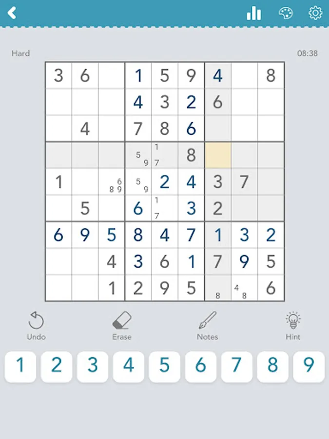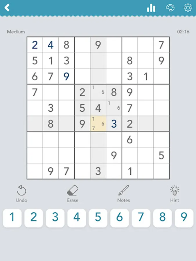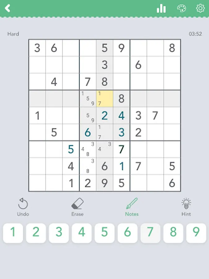 - Take notes that automatically update as you solve numbers on the puzzle board.
