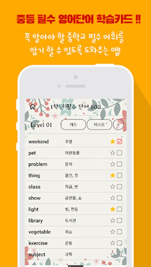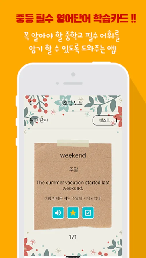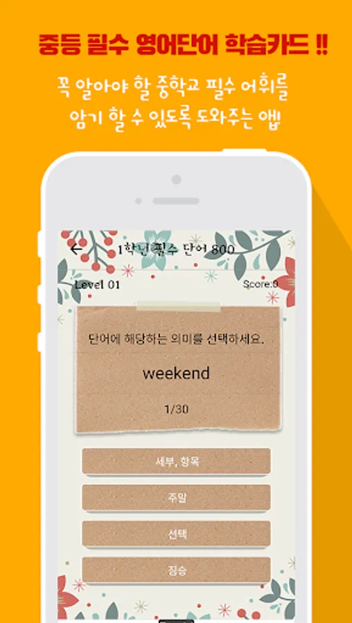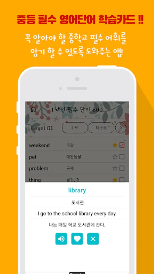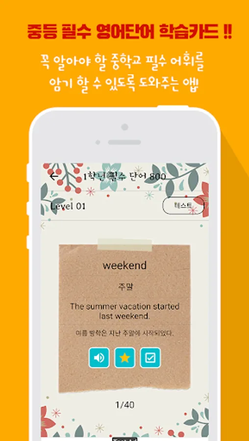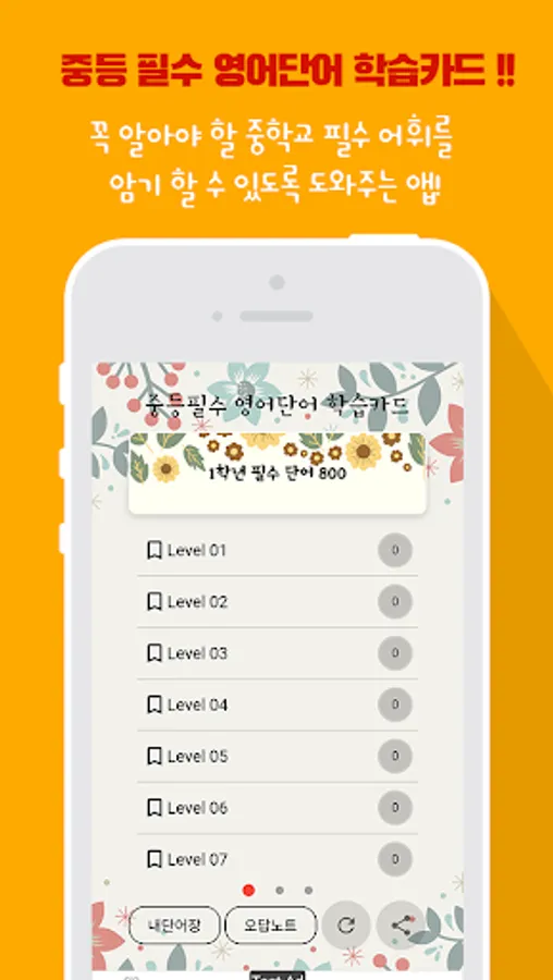 It is a learning app that helps you efficiently memorize English words you need to know if you are a middle school student.