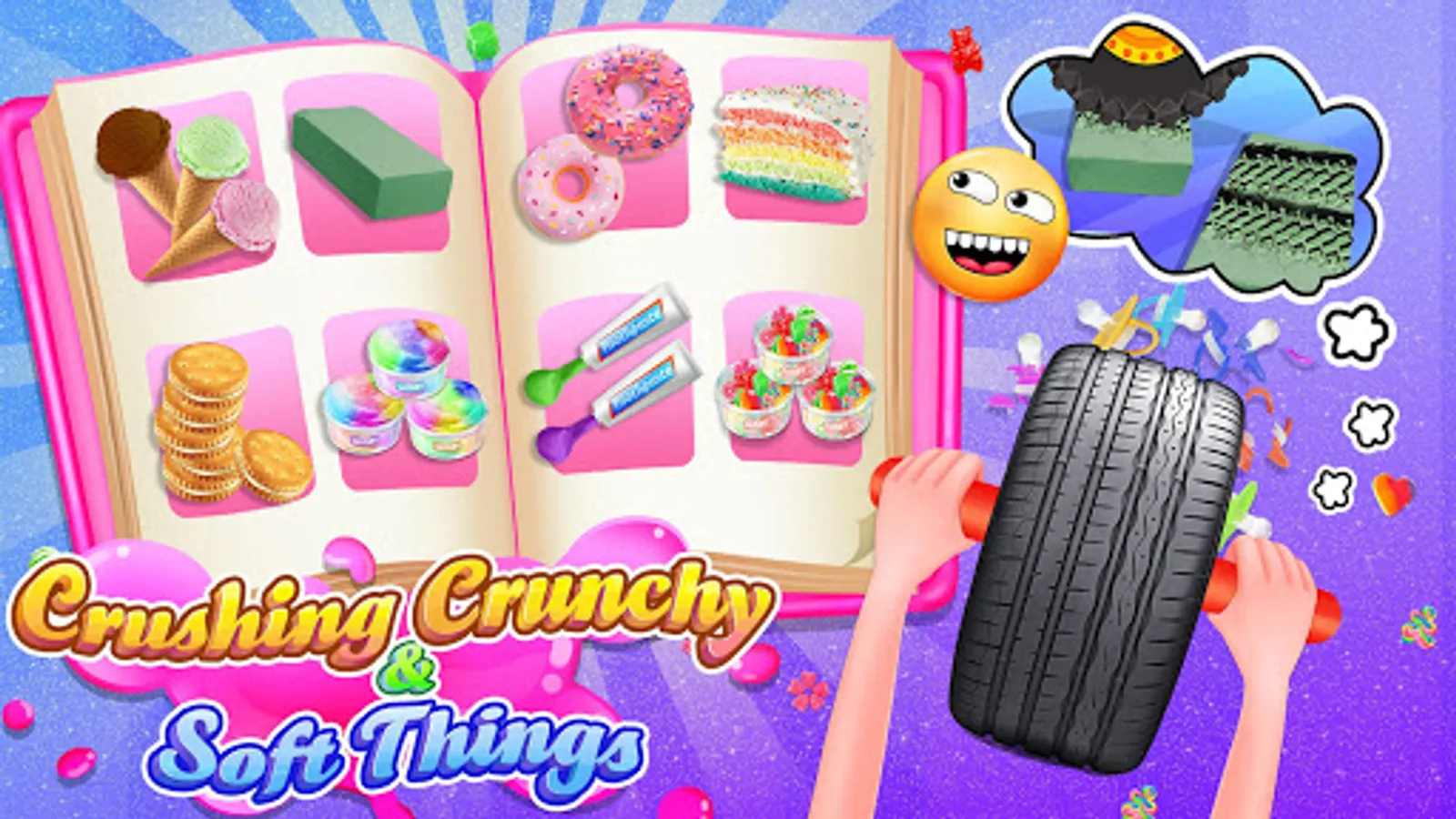 Crush different types of crunchy and soft things and feel the immense satisfaction. Many different types of objects available to crush!